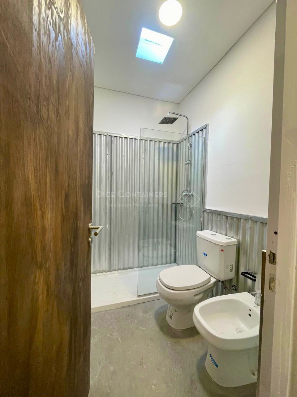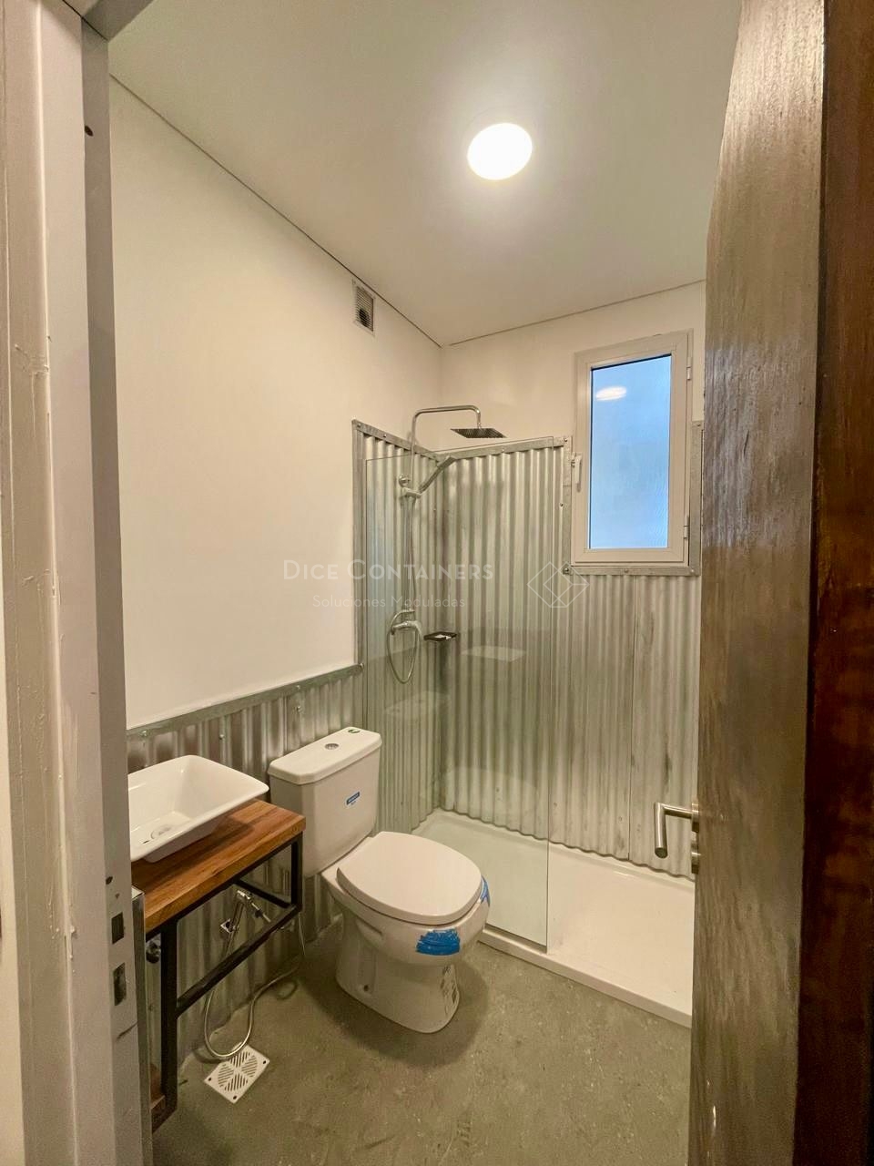 – Un (1) baño completo, incluye inodoro con deposito exterior, bidetmatic, receptáculo ducho (150cm x 70cm) + media ampara vidrio, calefón eléctrico y ventana (50 cm x 100 cm), puerta placa de comunicación al cambiador.